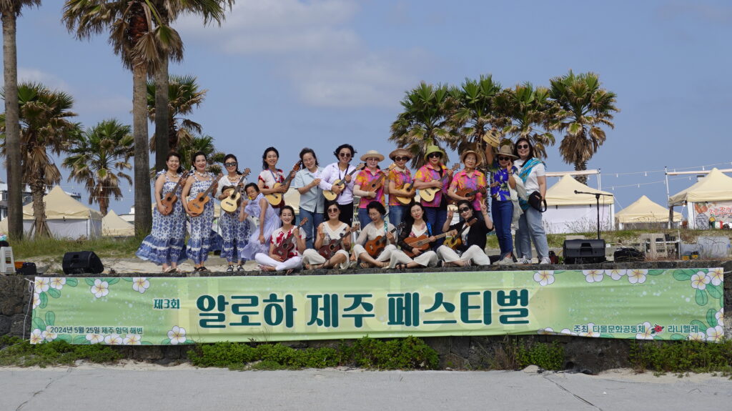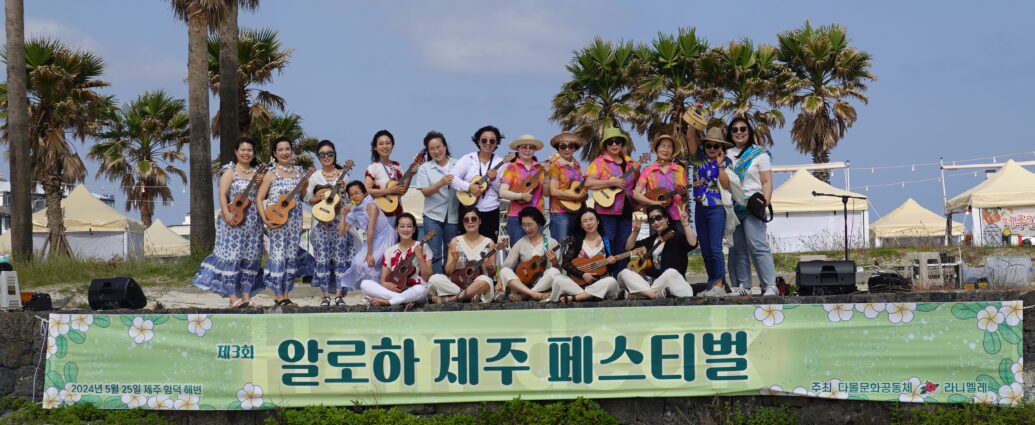 2024년 5월 26일 제주 함덕해변에서 진행된 제3회 알로하제주페스티벌은 전국에서 모인 많은 하와이안 음악인들과 동호인들 연주단, 훌라댄서 들이 함께 만드는 행사로 다몰협동조합 과 여러 단체들이 함께 주최하는 행사입니다. 광주에서는 약20여명의 인원이 참여했는데, 음악공연과 훌라(댄스)로 참여했으며, 히비스밴드에서 번안하고 안무창작한 임을위한행진곡 (하와이어 제목 Hele No Na Ipo)은 히비스밴드의 음악라이브에 광주훌라걸즈의 훌라로 함께 공연하였습니다. Hele No Na Ipo 는 광주에서 5월 한달동안 구도청 앞 광장에서 진행되는 오월의노래 에 참여하기 위해 올 초 히비스밴드가 번안,안무 작업을 한 곡으로 80년5월항쟁의 대표곡으로 알려진 곡입니다. 오월에 제주 함덕해변에서 울려퍼지는 임을위한행진곡은 전국에서 모인 참여자들에게 깊은 울림을 주었다고 합니다.