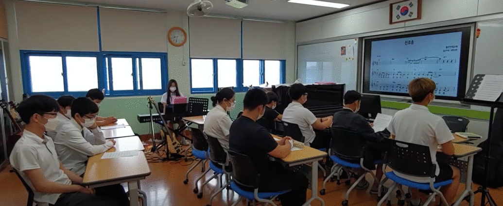 ‘진로송’ 함께 불러 보겠습니다. 로 시작하는 이 영상은 전라남도 신안군에 위치한 신안신의중학교 1학년 학생들이 진로수업 시간에 한정일 선생님과 함께한 영상입니다.