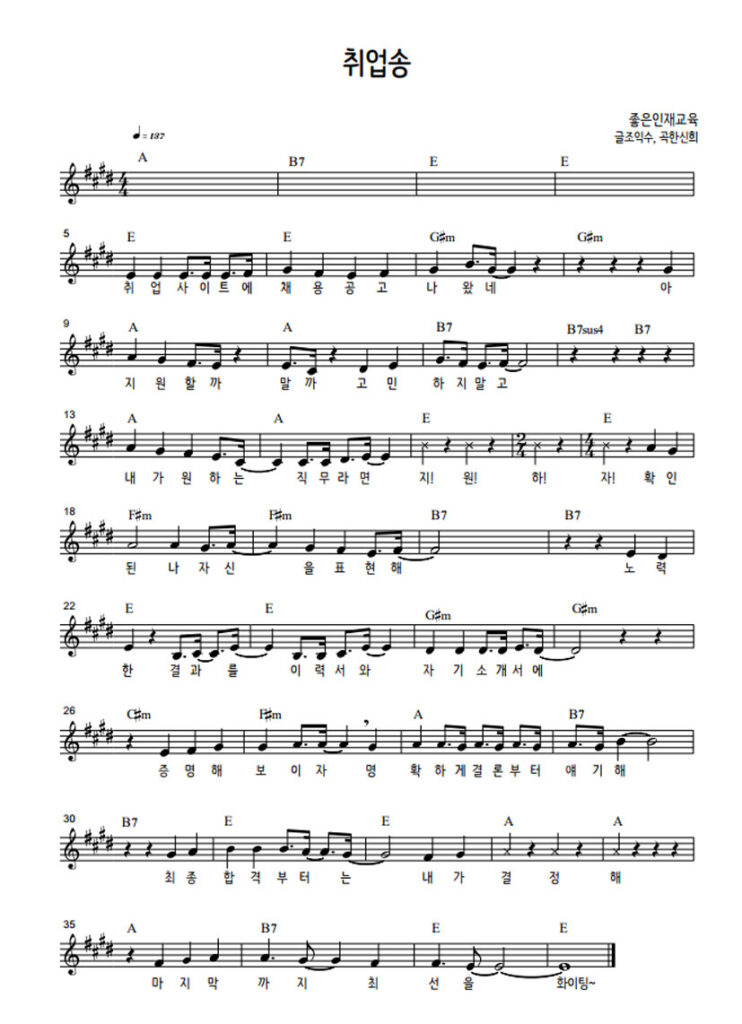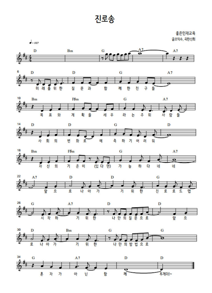 특히, 따라 부르기 쉽고, 가사가 전달하는 메시지가 학생들에게 자연스럽게 진로에 대해 생각하게 할 수 있을 것 같다고 하며, 노래 연습 촬영 영상을 보냈습니다.