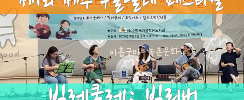 히비스티비 팀이 제1회 제주 우쿨렐레 동아리 페스티벌에 다녀왔습니다. 낙천리 의자공원 야외무대에서 진행되었으며 푸아올레나, 빌레쿨레, 투핑거스 그리고 광주의 월드뮤직앙상블에서 참여하였습니다.