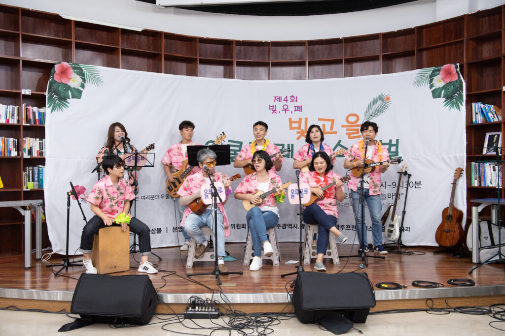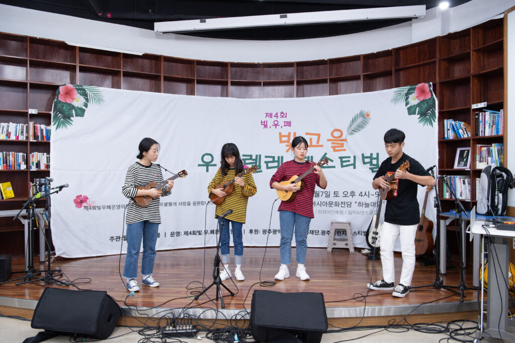 2019 제4회빛고을우쿨렐레페스티벌은 월드뮤직앙상블이 주최,주관하고 프린지페스티벌 사무국의 협조로 9월7일 아시아문화전당 하늘마당에서 약5시간동안 진행되기로 예정되었으나 태풍 링링으로 인해 장소가 동명동 I-Plex 1층 Stacato 카페로 변경되었다. 총16개팀 98명의 공연자가 참여하였고 관계자 및 시민들 300여명의 함께 하였다. 하와이음악공연, 우쿨렐레공연, 스틸기타공연, 훌라댄스공연, 밸리댄스 공연 뿐 아니라 하와이문화체험으로 훌라배우기, 꽃목걸이 레이만들기, 하와이포토존, 우쿨렐레 수리부스 등을 운영하여 지역민에게 다양한 볼거리와 즐길거리를 제공하였다. 우쿨치는아이들, 쿠아우앙상블 , 하카와히네 등 다양한 팀이 참여했으며 앞으로 광주지역에 수준높은 하와이문화를 선보일 다양한 팀들이 연합으로 행사를 진행함으로 지역민에게 세계의 문화를 알리는 계기가 된 행사였다.