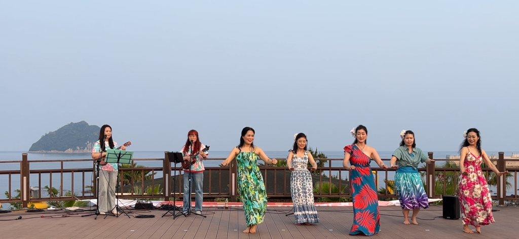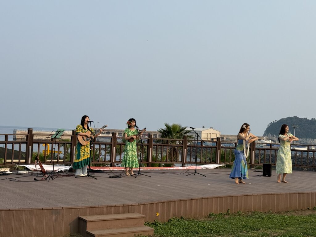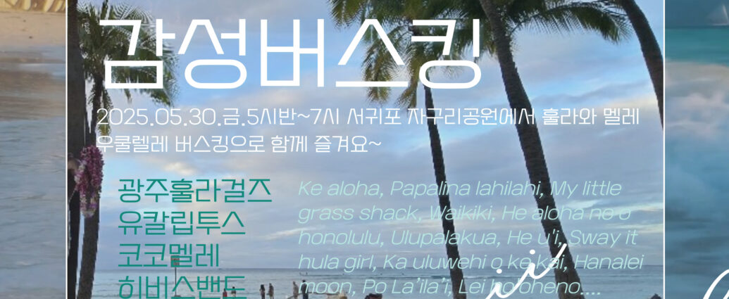 알로하제주페스티벌을 위해 전날 미리 제주에 도착한 팀들중 일부 팀들이 연합하여 서귀포감성버스킹을 진행하였다. 5월30일 금요일 오후5시반부터 7시까지 서귀포 자구리공원 무대에서 훌라와 멜레, 우쿨렐레 버스킹으로 진행하였다. 광주훌라걸즈, 유칼립투스, 코코멜레, 히비스밴드, 규규 가 함께 참여한 공연에서주로 멜레와 훌라곡으로 진행되었다. Ke aloha, Papalina lahilahi, My little grass shack, Waikiki, He aloha noo honolulu, Ulupapakua, Sway it hula girl, Ka uluwehi o ke kai, Hanalei moon, Po lailai, Lei hoo heno 등 여러 곡들이 연주되었고 훌라와 함께 진행되었다.