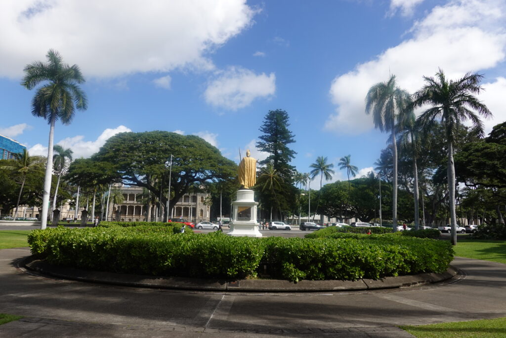1일차(하와이,31,수) : 비행기에서 1박 후 호놀룰루공항에 도착, 카메하메하동상, 이올라니 부근 , 관공서, 악기점, 장보기(돈키오테마트), 푸드트럭