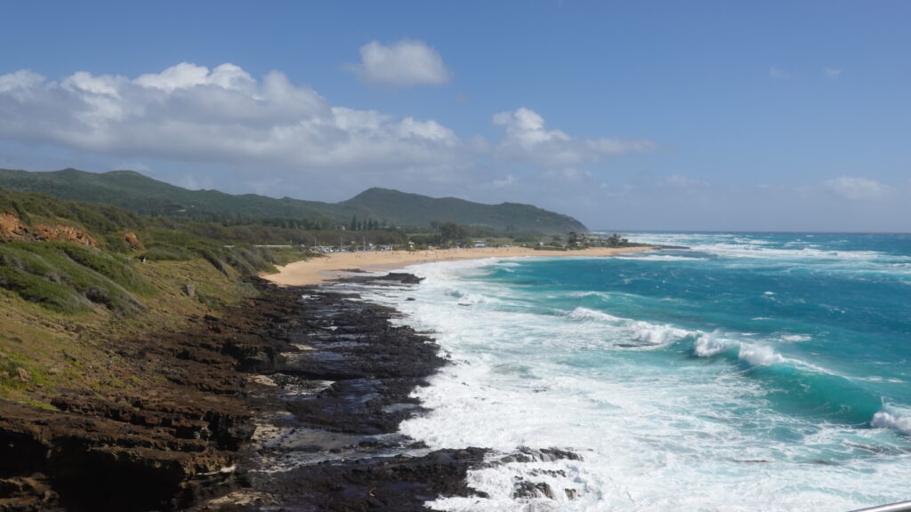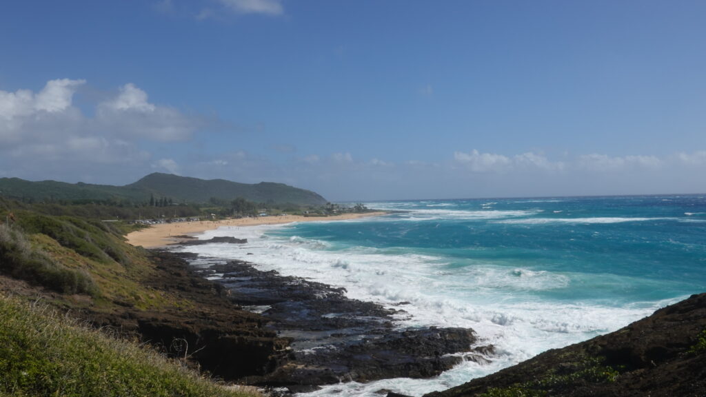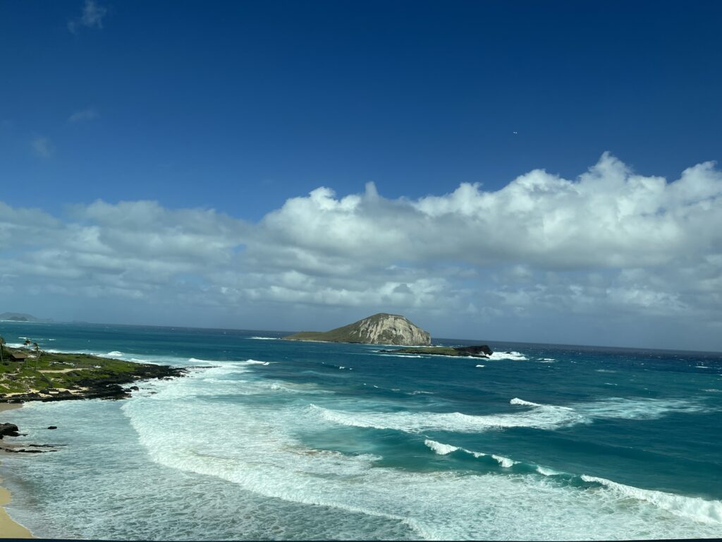 6일차(하와이,5,월) : 한인부부투어(밴차량) 와이키키출발 – 다이아몬드헤드지나서 카할라고급주택가 – 하나우마베이돌아서 아름다운 선셋비치 해안선을 따라 블루홀(용출암) – 씨라이프파크경유 – 중국사람 모자섬에서 잠시 휴식 – 점심(카후쿠 새우트럭 새우요리) – 커피농장 – Dole 파인애플 농장 – 와이켈레 아울렛 – 와이키키도착, 브라이언공연(듀크스 와이키키)