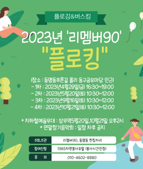 플로깅이라고 들어보셨나요? 걸으며 쓰레기를 줍는 등 환경운동을 하는 것이라고 합니다. 노래팀인 “리멤버90″에서 2023년 플로킹(플로깅&버스킹)을 진행한다고 합니다. 벌써 2번째 플로킹에 함께 참여해봤습니다. 1365자원봉사센터에서 신청하신 분들과 동명동 천칭자리 가족들 그리고 리멤버90멤버들이 함께 농장다리 부근 푸른길 산책로에서 플로깅을 진행하였습니다. 그리고 이어진 “리멤버90” 의 음악공연에서는 자원봉사의 노래인 “행복합니다” 와 리멤버90의 자작곡 “리멤버송” 을 들을Continue Reading